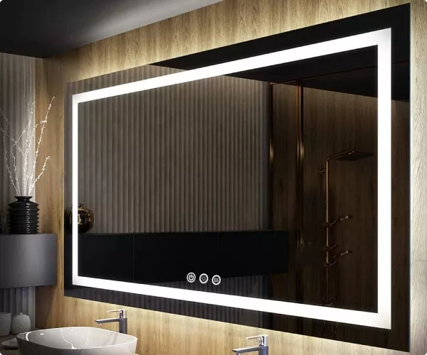 Our mirror boasts basic features that set it apart from the rest. A convenient touch sensor makes operation seamless while the anti-fog technology ensures clear reflection at all times. The LED strip provides backlit light and three adjustable color temperatures from warm to natural to white light, catering to all your needs whether you are applying makeup, shaving, or styling your hair. Its IP65 waterproof rating ensures it is safe for use in humid bathroom environments. The mirror is perfect for use during your morning and evening routines, or any time you need a clear, well-lit reflection.